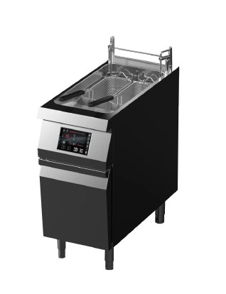 400*900*900мм, 22кВт, 380В, электрическая фритюрница с 1 ванной на 22л, теоретическая производительность 44 кг/ч, две корзины для жарки, автоматический подъем корзин, 30 программ жарки, touch панель управления - 7" экран с высоким разрешением, сигнал об окончания цикла, температура приготовления от 0 до 185°C, функция предварительного нагрева и поддержание температуры 100°C, сигнал HACCP, на закрытой подставке с 1 распашной дверцей
