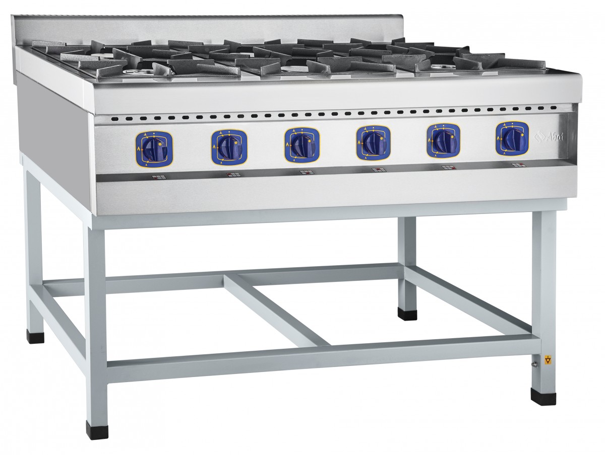 1200x900x970, 37 кВт, 6 ГАЗОВЫХ горелок: 4 горелки по 5,5кВт, 2 горелки по 7,5кВт, без духовки