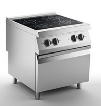 800*900*900мм, 28кВт, 380В, электрическая стеклокерамическая индукционная сплошная плита с 4 зонами нагрева по 7 кВт каждая, на закрытой подставке с 1 распашной дверцей