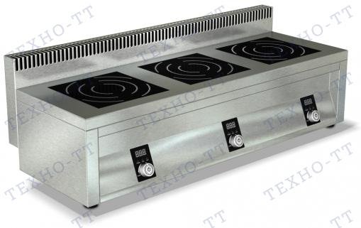 1200х550х400мм, Плита 3конфорочная плоская, столешница из нержавеющей стали марки AISI 304 толщиной 1,2 мм, корпус из нержавеющей стали марки AISI 430 толщиной 0,8мм. Мощность 3х5 кВт, борт высотой 100мм, питание 380В. Толщина стеклокерамики 6мм. 9 уровней мощности. Поставляется в собранном виде., для ИПП-340182 подходят подставки СПИ-033/1204, СПИ-837/1204, СПИ-834/1204, МН-90/1205, МН-91/1205