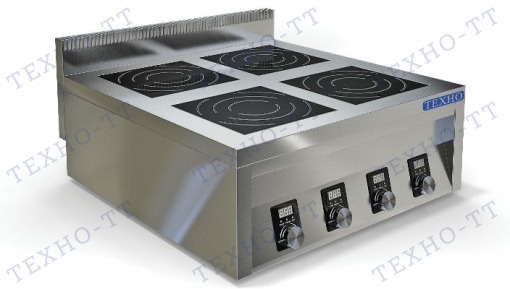 800х760х400; Плита 4конфорочная плоская, столешница из нержавеющей стали марки AISI 304 толщиной 1,2 мм, корпус из нержавеющей стали марки AISI 430 толщиной 0,8мм. Мощность 4х3,5 кВт, борт высотой 100мм, питание 380В. Толщина стеклокерамики 6мм. 9 уровней мощности. Поставляется в собранном виде.