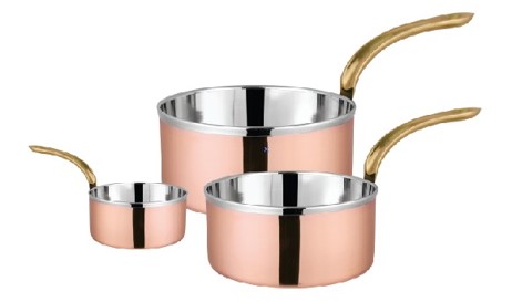нерж сталь с покрытием медь, ручка - латунь; на 3 порции; размер - 26*16,5см, длина ручки 11,5см