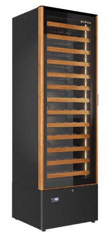 600x575x1867мм, 1кВт, 220В, +4...+18С, 440кг, вынимаемых ящиков с горизонтальными бутылками 13 шт., с встр.агр.R290, 5 бут. на ящик, дверь с деревянной вставкой.