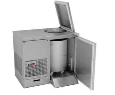 Стол охлаждаемый Special для хранения отходов, без борта, 1-дв., внутренний размер камеры 480х420х700 мм, 0...+8°С, 0,25 кВт, 230 В, бок.агрегат, 1 люк, отверстие d=350 мм с фланцем, выдвижной пандус, материал - нерж.сталь AISI 430, задняя стенка - оцинк.сталь