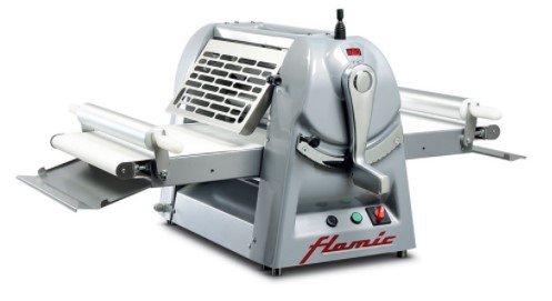 1680*870*900мм, 0,5кВт, 220В, 430*870*900мм в сложенном положении, размер ленты транспортера 450*700мм, вариатор скорости движения конвейера 3-34 м/мин, максимальная загрузка теста на ленту 3 кг, теоретическая производительность 10-12 кг/час, зазор между раскатывающими валками 0,2-35 мм, электро-механическое управление джойстиком, дисплей отображения толщины раскатки, корпус покрыт эпоксидной краской