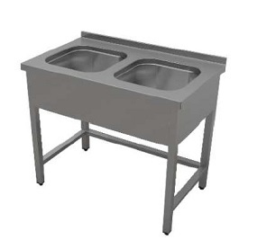 1200х700х850мм,1200х700х850 мм,2-гнездовая (500х500х450), широкий фартук с 3-х сторон, без обвязки, разборный каркас - нерж.профиль 40х40, отступ задних ног 80мм, столешница нерж.сталь AISI 304 1,2 мм