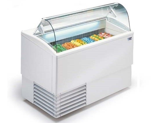 1184x800x1176мм, 0,81кВт, 220В, 97 кг. Цвет отделки Белый, вместимость 6(+6) емкости по 5 л (360х165х120 мм), резервный отсек для хранения запаса, температурный дипазон -20...-10°C. Стеклянная надстройка с гнутым стеклом, поворотная крышка-дверца, охлаждение статическое, автоматическая оттайка. Климатический класс 7 (Т до 35°C, влажность до 75%), хладагент R290
